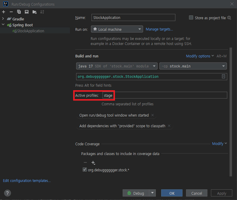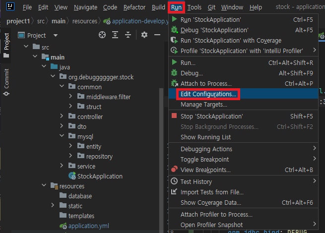 실행을 시키면 spring - profiles - active 에 기입된 환경으로 프로젝트가 실행된다.
