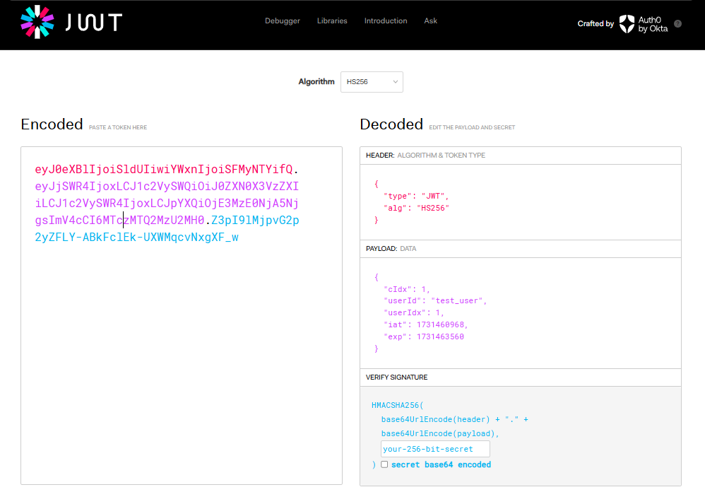그러므로 토큰에 사용자의 중요정보를 넣지 않도록 조심하는것이 좋겠다.
