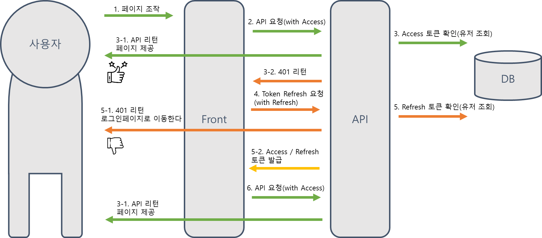 서비스에 따라서 노란부분(Refresh 유효, Access 만료)에서 로직을 선택할 수 있다.