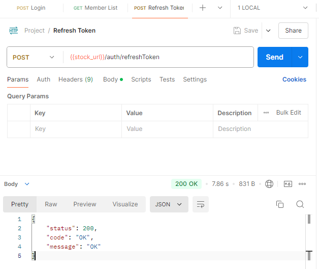 Refresh 토큰값이 정상이면 OK가 떨어진다.